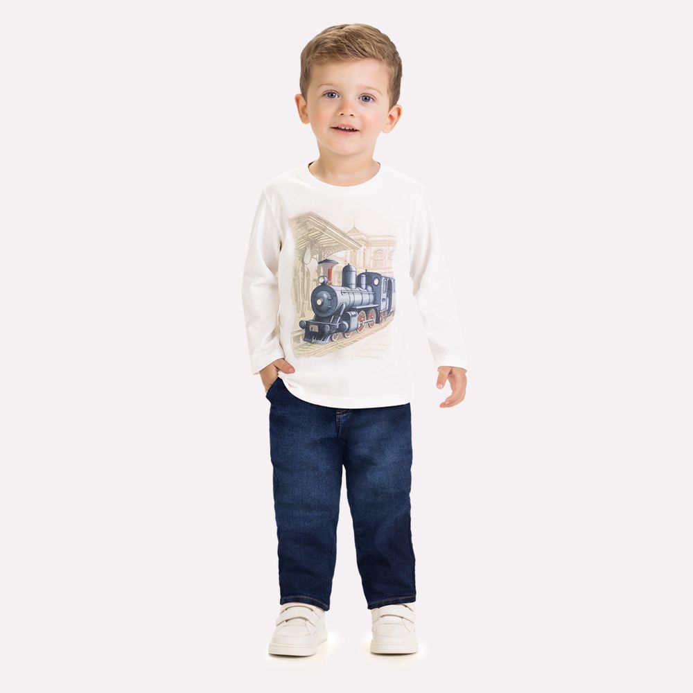 Um toque de nostalgia e encanto que transforma o vestir em uma verdadeira viagem imaginária. A camiseta infantil menino Milon traz a magia dos clássicos trens em uma estampa rica em detalhes, despertando a curiosidade e o espírito aventureiro do menino com uma proposta charmosa e atemporal.