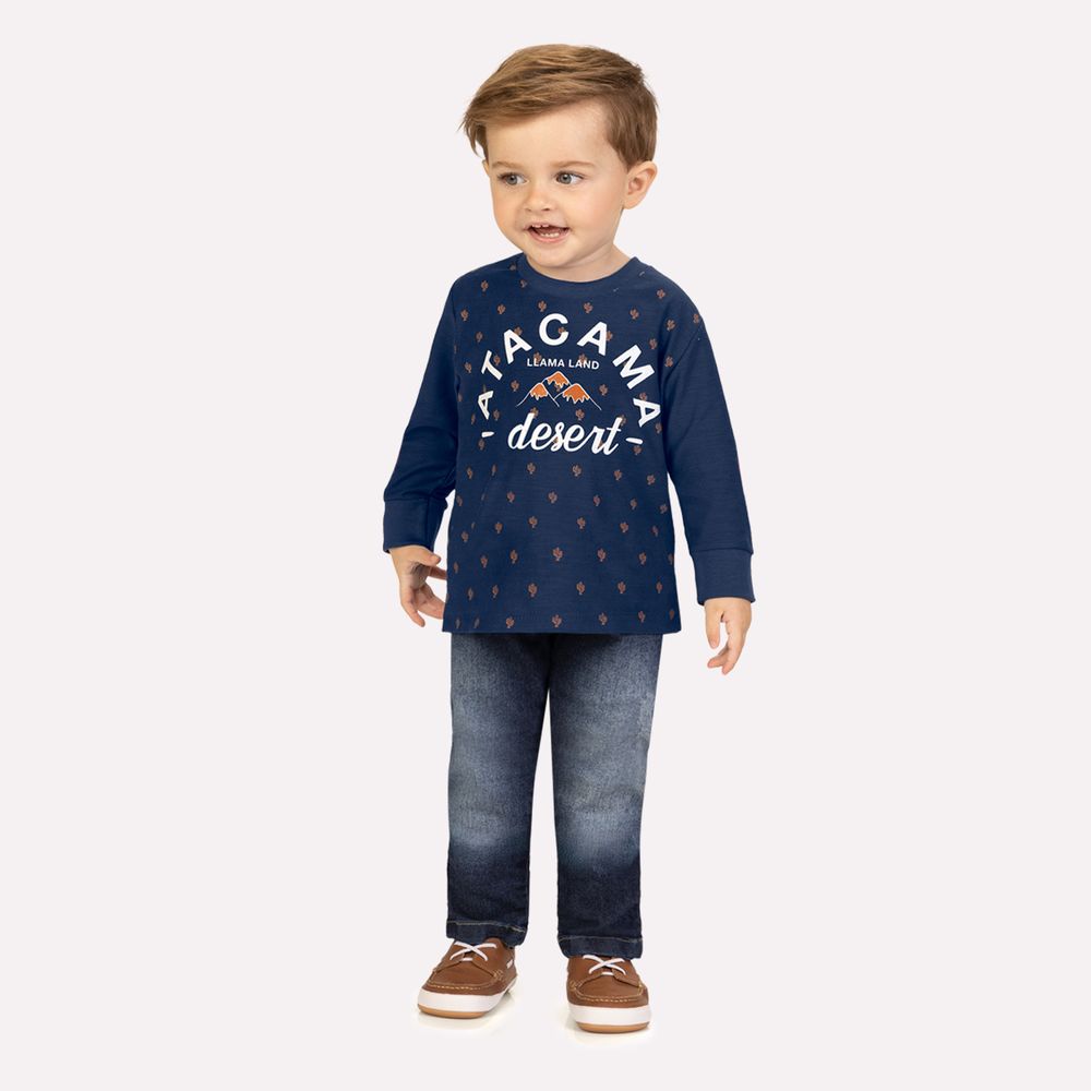 Cheia de personalidade e inspiração aventureira, a camiseta infantil menino Milon convida a explorar novos horizontes com estilo e autenticidade. A estampa com lettering “Atacama desert”, acompanhada de ilustração temática e mini padronagem distribuída por toda a peça, cria um visual moderno que desperta o espírito explorador do menino em cada detalhe.