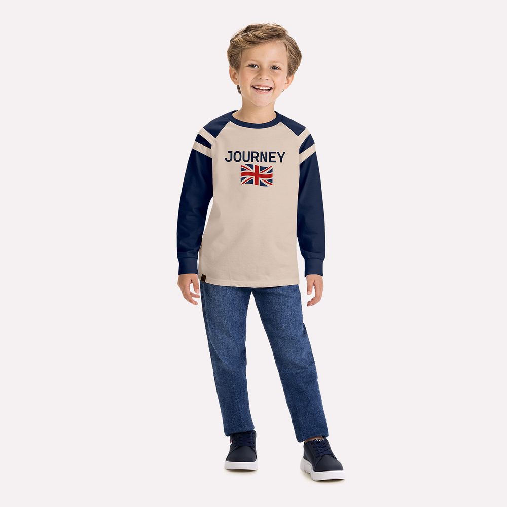 Para acompanhar cada nova descoberta com estilo e personalidade, a camiseta infantil menino Milon traduz o espírito aventureiro em uma proposta moderna e cheia de atitude. A estampa com bandeira e lettering “Journey” traz inspiração urbana e contemporânea, perfeita para o menino que transforma cada momento em uma nova jornada.