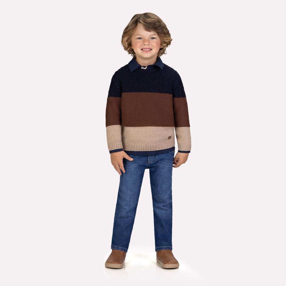 Confeccionado em tricô com composição de 50% algodão e 50% acrílico, o casaco oferece toque macio, boa respirabilidade e excelente conforto térmico. A modelagem apresenta caimento confortável, acompanhando os movimentos com liberdade e mantendo o visual alinhado. O design sem estampa aposta em blocos de cores que criam um visual contemporâneo e versátil, ideal para diferentes combinações no guarda-roupa infantil.