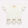 Delicado e encantador, o conjunto infantil menina Milon combina o romantismo dos bordados com a leveza dos tecidos naturais, criando um visual elegante e confortável para ocasiões especiais. A blusa cropped é confeccionada em cotton 95% algodão e 5% elastano, oferecendo toque macio, caimento leve e flexível para acompanhar os movimentos das pequenas com conforto e estilo. Sua modelagem proporciona um visual moderno e soltinho, enquanto as mangas levemente bufantes com franzidos adicionam um toque lúdico e feminino. O grande destaque está nos bordados vazados aplicados nas mangas e na barra, com desenhos florais delicados que conferem sofisticação e acabamento artesanal à peça.