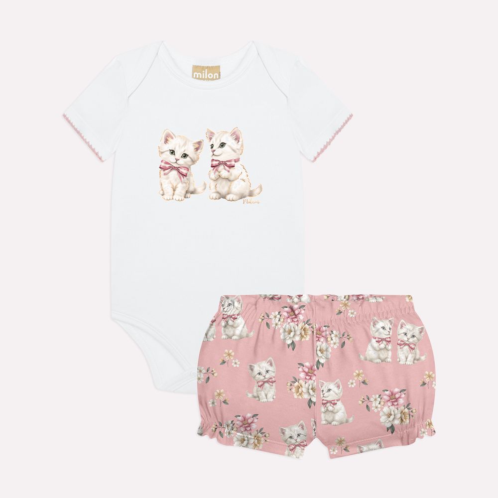 Uma fofura irresistível para acompanhar os momentos mais encantadores da infância! O conjunto bebê menina Milon combina conforto, delicadeza e o charme dos gatinhos em um look que é puro amor.