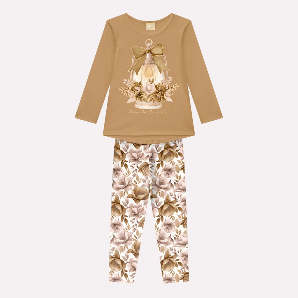 A legging complementa o conjunto com conforto e harmonia visual. Confeccionada em cotton com 92% algodão e 8% elastano, a peça possui modelagem ajustada ao corpo, oferecendo elasticidade e liberdade de movimento para as atividades do dia a dia. A estampa rotativa digital com flores cria um visual romântico e elegante, formando uma composição equilibrada e cheia de charme ao lado da blusa. Versátil e encantador, este conjunto da Milon é ideal para compor looks casuais delicados para passeios, encontros em família ou momentos especiais, unindo conforto, sofisticação e a leveza que acompanha cada fase da infância.