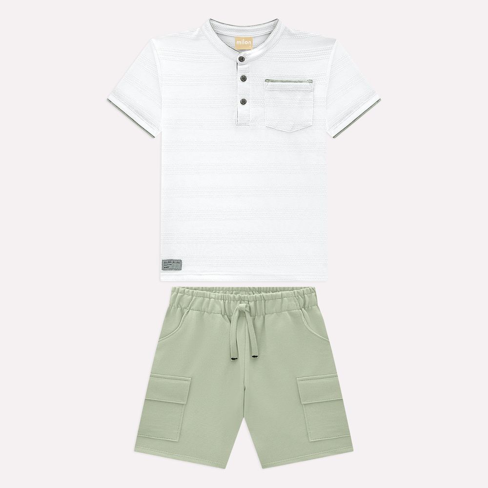 Conforto e estilo para acompanhar cada descoberta! O conjunto infantil Milon foi criado para os meninos que adoram se movimentar e brincar com liberdade, sem abrir mão de um visual moderno e encantador.