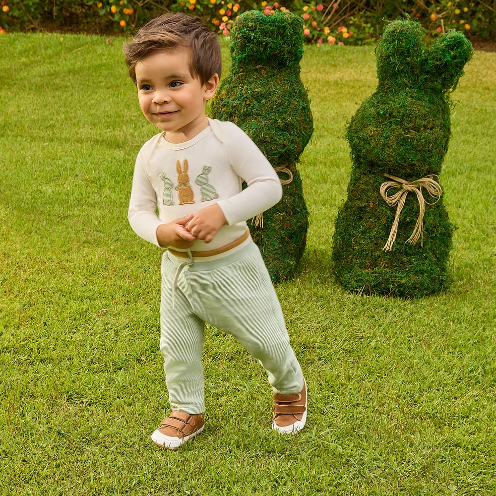 O body é confeccionado em cotton com 95% algodão e 5% elastano, garantindo toque suave e elasticidade para maior conforto. A peça apresenta estampa frontal com coelhinhos e detalhe bordado, trazendo um visual lúdico e encantador inspirado no universo da Páscoa. O modelo conta com abertura entre as pernas para facilitar as trocas.