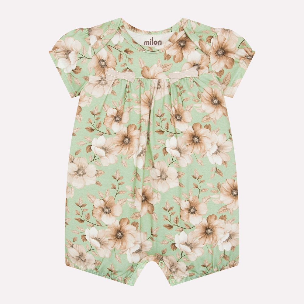 A estampa rotativa de flores aparece de forma harmoniosa por toda a peça, criando um visual romântico e acolhedor. O detalhe do laço aplicado acrescenta um toque sutil de charme e feminilidade, valorizando o design com delicadeza. Os acabamentos são suaves, pensados para garantir conforto absoluto durante o uso. Um macaquinho ideal para acompanhar o bebê com leveza e elegância, perfeito tanto para momentos especiais quanto para o dia a dia.