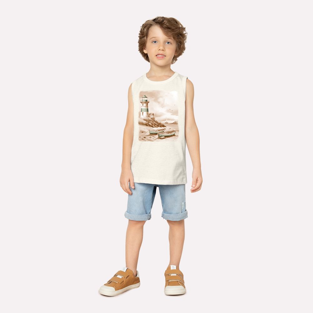 A regata infantil menino Milon é confeccionada em meia malha 100% algodão, proporcionando toque suave e excelente respirabilidade para os dias mais quentes. A modelagem reta garante caimento confortável e liberdade de movimentos, ideal para acompanhar as aventuras dos pequenos com praticidade e estilo.