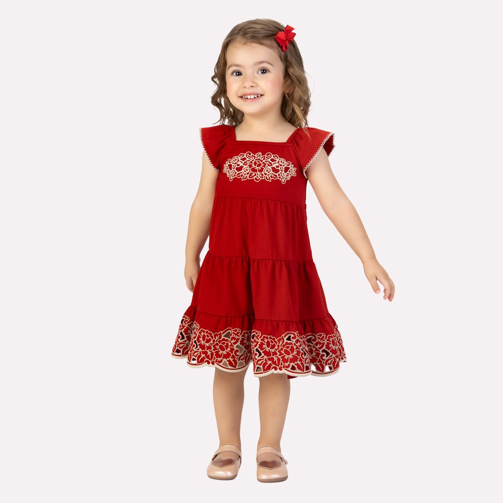 A estampa localizada de flores dá vida ao look com um ar romântico e elegante, enquanto os acabamentos em picueta trazem um charme sutil e delicado às manguinhas. O tom vermelho vibrante reforça a atmosfera natalina, tornando o vestido ideal para composições cheias de encanto. O resultado é um vestido encantador, que une conforto, beleza e sofisticação — perfeito para celebrar momentos especiais com o toque de elegância que só a Milon tem.
