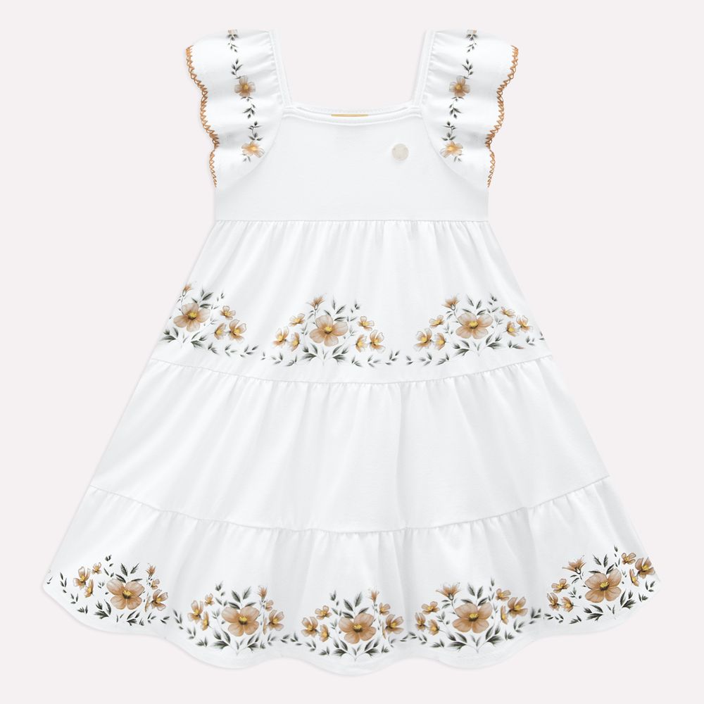 A peça encanta com sua estampa localizada de flores, que aparece em faixas delicadamente distribuídas na saia e no busto, criando um visual harmonioso e encantador. Os babados franzidos na barra trazem movimento e leveza, enquanto a picueta nas mangas adiciona um toque romântico ao design. Para finalizar, a charmosa plaquinha metálica Milon dá aquele ar sofisticado característico da marca. Com caimento impecável e modelagem que valoriza o conforto, esse vestido é a escolha ideal para deixar as meninas ainda mais encantadoras em qualquer celebração.