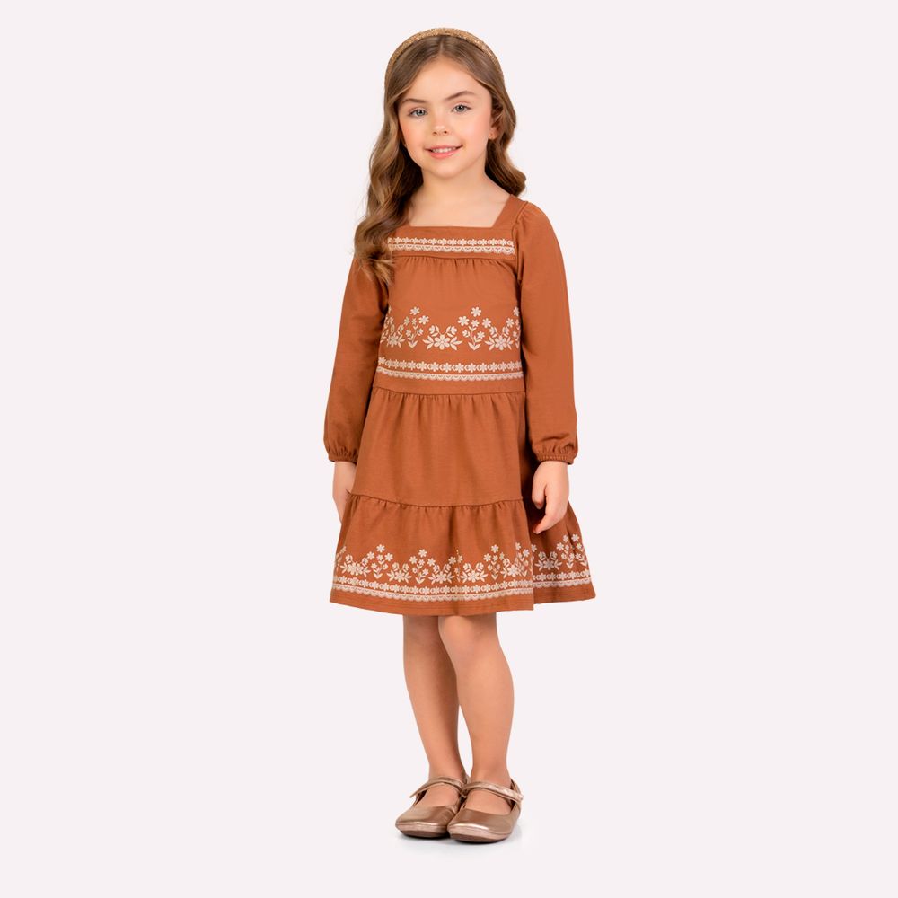 Vestido Infantil Menina Marrom Milon