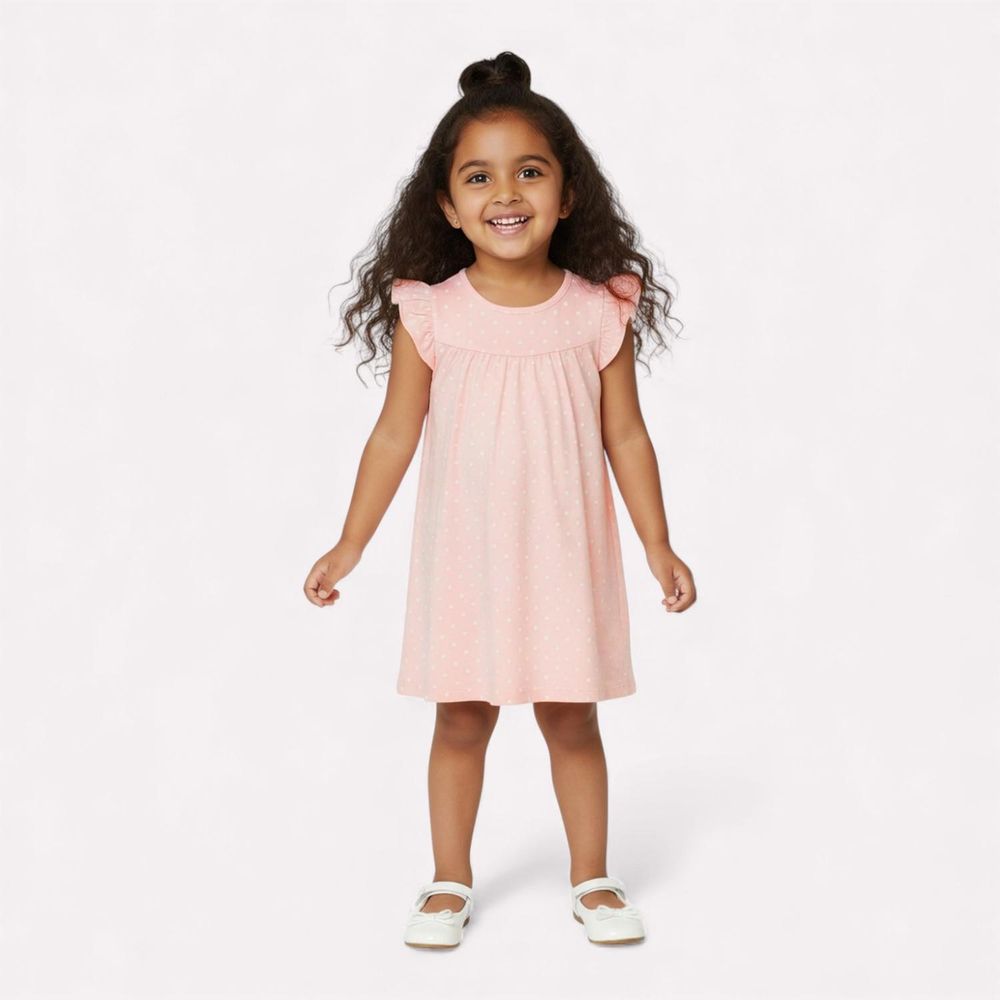 As manguinhas delicadas com babadinhos completam o visual, enquanto a estampa rotativa de poá adiciona um toque atemporal e elegante, perfeito para diversas ocasiões.