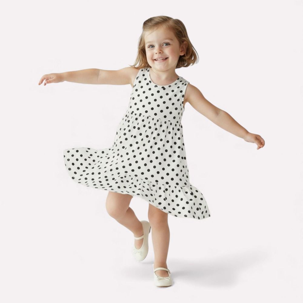 Confeccionado em cotton leve e macio composto por 95% algodão e 5% elastano, apresenta estampa rotativa de poás atemporal, que nunca sai de moda e adiciona um toque divertido ao visual. Com modelagem evasê, recorte franzido na cintura e babado na barra, garante movimento fluido e caimento gracioso em cada passo. Possui decote redondo com acabamento em debrum, que assegura maior conforto e delicadeza. Um vestido versátil e charmoso, ideal para passeios, encontros em família ou ocasiões especiais, trazendo sempre leveza e bem-estar.